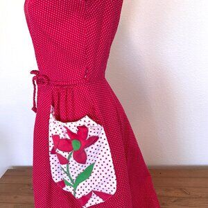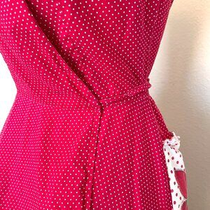 60's Dress - Wrap Around - Red Polka Dot - Summer - Handmade - Size Small/Medium