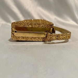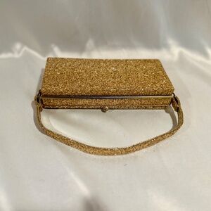 Vintage 60s era gold glitter frame evening bag 9" W x 4"H x 2"Deep, 4" Handle.