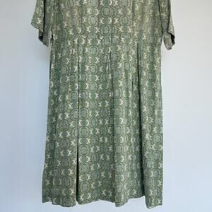 60’s Green Psychedelic Patterned Plus Size Collared Shirt Dress Mod Retro Sz XL