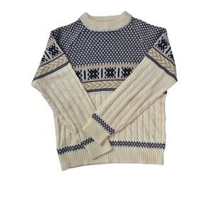 JC Penny Classic Styling 100% Acrylic Sweater The Mens Shop Cream/Blue/Tan Ribbed Trim Sz L