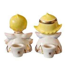 60s Kitschy Lefton Mid Century Christmas Boy Girl Atomic Candle Holders 2559 VTG