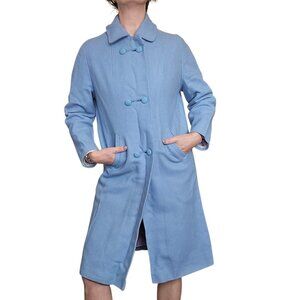 Vintage Womens Light Blue Wool Midi Peacoat Lucite Buttons.
