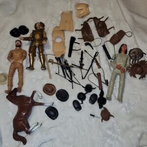 Vintage 1960s Louis Marx Toys Johnny West Geronimo The Indian Odin The Viking Sir Gordon The Golden Knight And Horse Action Figures And Accessories Huge Lot