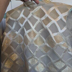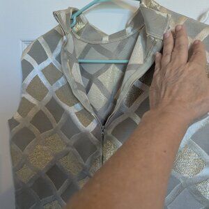 60s MOD | Brocade 2 Pc Set | L | American Vintage | Silver / Gold / Taupe | EVC