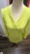 Bold vintage mod mini in a neon yellow shade with subtle chartreuse undertones. Classic mod styling with a deep V neckline, empire waist seam, and decorative pearl-style button accents down the bodice. Long sleeves with cuffs and a fitted mini-length cut make this a true statement piece from the late 60s/early 70s.