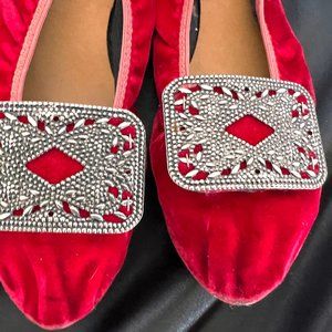 Very unique and classy 60's red stretch velvet pointed slip ons