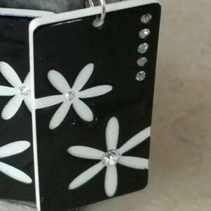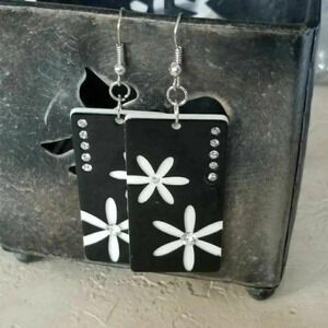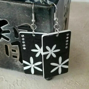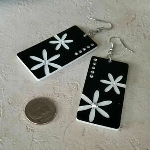 Retro White Black and Lucite Acrylic and Austrian Swarovski Crystal Dangle Earrings
