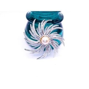 60s Sarah Coventry Swirl Brooch "Book Piece" Hurricane Simulated Pearl Rhodium