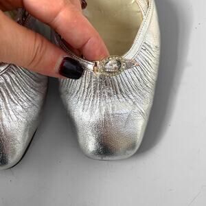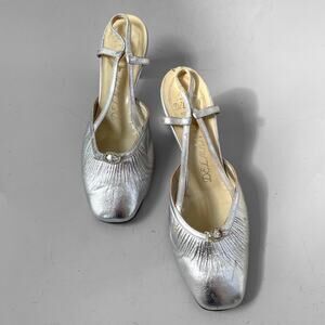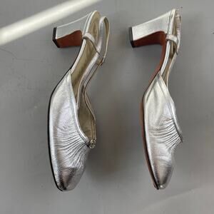 60s Silver Metallic Leather Square Toe Vintage Delman Slide Low Chunk7Heel sz 7