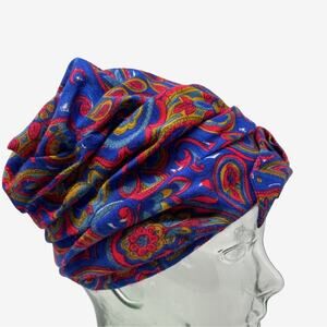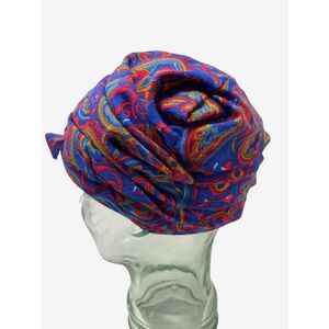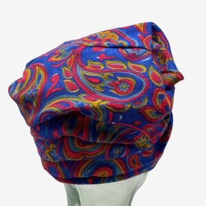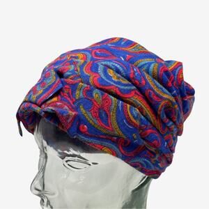 60s Turban Style Hat Paisley Blue Red Bow Vintage MidMod Casual Boho Styles