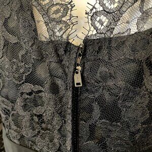 • Sheer lace sleeve and bust