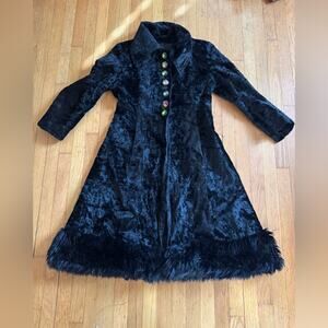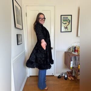 60s Vintage Black Velvet Princess Coat with Faux Fur Hem