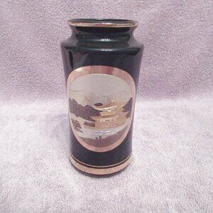 60s Vintage JAPAN Art of Chokin 24K Gold VASE Etched COPPER Gilded PAGODA Asian