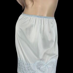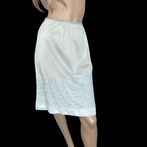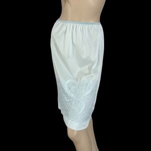 60s Vintage Pale Blue Nylon Slip Skirt Heart Appliqués & Chiffon Lace | Size M