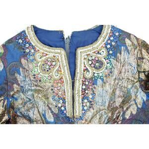 60s Vintage Pat Sandler Gold Metallic Beaded Dress M