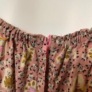 60s Vintage Pink and Black Floral Cotton Corset Waist Scoop Neck Peasant Dress