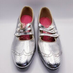 60s Vintage Roman Silver Leather Mary Janes - Size 5.5