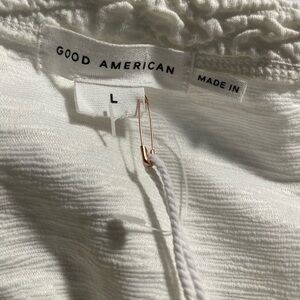 61. Good American Elegant White Textured Skirt, Size L, NWT, small stain