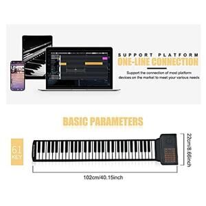 The keybaord has 61 keys -makes its length suitable for your table. There are 128 kinds of tones, 128 kinds of rhythm and 20 demo songs. It is not only the piano, you can experience all sorts of sounds: like drum, guitar, bass, violin, cello, voices, piano, organ, trumpet, all the sounds that you can get on the electronic piano.