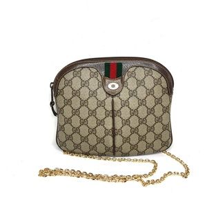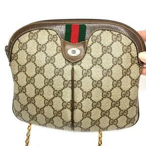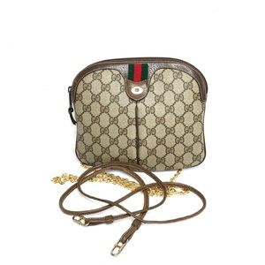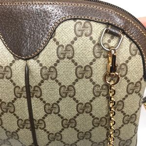 The bag comes with two straps: original brown one (shows signs of aging) and a brand new non-branded gold chain. Straps are removable so the bag can be used as a clutch as well.