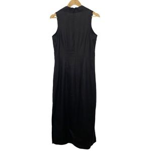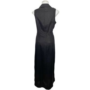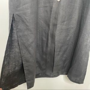 FEATURES: 100% linen (EXCELLENT quality linen, I was surprised when I saw this was GAP); sleeveless; button front; v-neck; collared; maxi length; side slits on both sides; 1990s; 90s; pearlized buttons