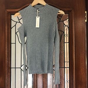 Smart Cold Shoulder Grey Cotton on Ribbed Pullover - Look great with Jeans or black pants - Another Top that I purchased that has not been worn.