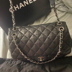 Measurements: Handle Drop 9", Height 7", Width 11", Depth 4", Strap Drop 17" Designer: Chanel Model: Soft Accordion Flap Bag Quilted Lambskin Hardware Color: Aged Silver 9/10 condition minor scratches to interior as it’s lambskin but barely noticeable. Can wear crossbody. Great alternative to a caviar flap. Purchased from Rebag for $3000 was listed as excellent condition never used by myself. Love the bag but downsizing. No odors, stains, rips.