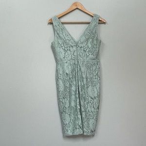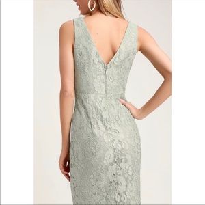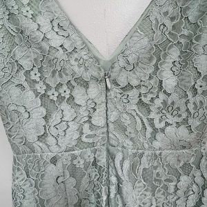 Like-new lace dress from Lulu’s with v neck in front and back. Zipper in the back. The color is like a mint green.