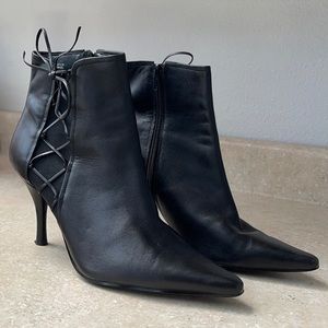 Chic y2k pointed booties. Leather is in amazing condition, only worn once. The slight wear is visible on the right heel which is pictured.
