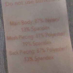 Body 87% nylon/13% spandex, Mesh 81% polyester/19% spandex