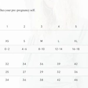 Choose the size that best matches your pre-pregnancy size: 1- XS (0-2), 2-S (4-6), 3- M (8-10), 4- L (12-14), 5- XL (16-18), 6- XXL (20-22), 7- XXXL (24-26)