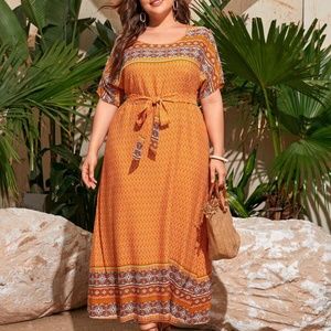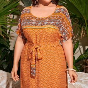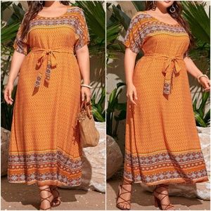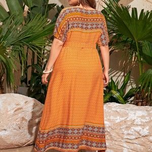PLUS Orange Tribal Print Maxi Dress Belted