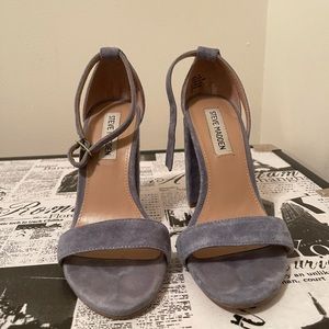 Blue Suede Steve Madden Carson Heel. Block heel makes for a comfortable fit. Perfect for a long day out. Blue shade goes great with a lot of outfits. Please feel free to ask any questions!