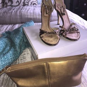 Bronze color with amber accents in the ankle strap and across the toes.