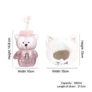 Starbucks Sakura Fuzzy Cat/ Bear Hat Cold Bottle