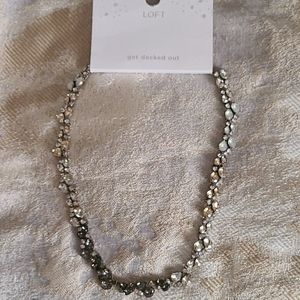NWT, Beautiful crystal necklace. Clear, gray, amber, gold crystals, versatile necklace that can go with many colors.