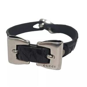 Add a touch of elegance to your collection with this beautiful Gucci leather bow bracelet! The delicate leather bow is both stylish and feminine, while the SV925 detailing adds a touch of luxury and sophistication.