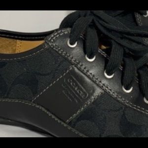 Coach Black Logo Sneakers. Leather, canvas, logo. Minor signs of wear.