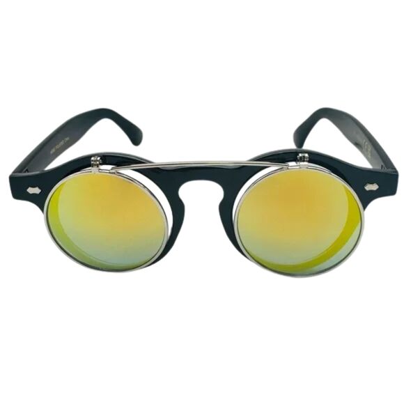 ☑️ 1 Pair of Flip Up Circle Sunglasses with Mirrored Lenses