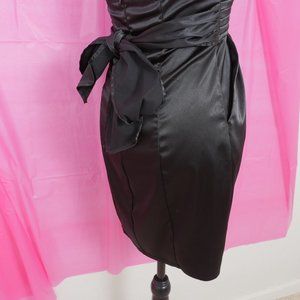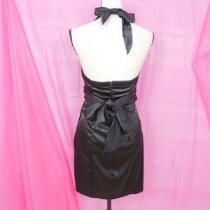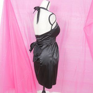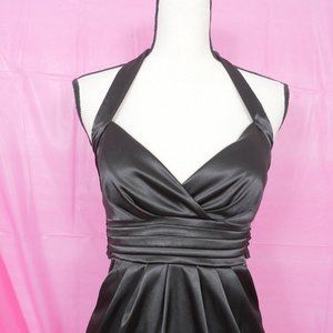 Arden B. Black Satin Halter Side Pockets Pleated Waist Tie Back Size S Party Dress