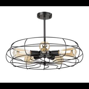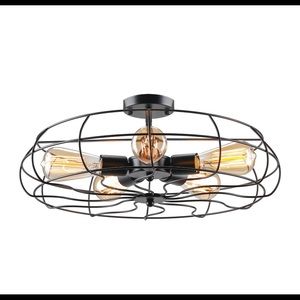 Industrial 5-Light Semi-Flush Mount Ceiling Light w/ Metal Cage in Black Finish
