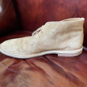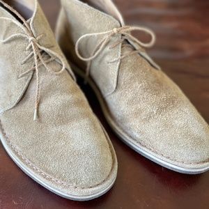 Cole Haan Tan Suede Men's Chukka boot 10 light tan suede excellent pre-worn condition with extremely light wear. Beeswax sole with reinforced leather toe. Soft suede body in light tan. Size 10M