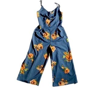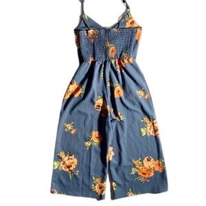 Eyeshadow Blue Floral Wide-Leg Sleeveless Jumpsuit