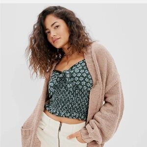 Beautiful polyester blouse from Anthropologie. Back opens to a navy tank. Looks great dressed up or with jeans. Excellent condition!