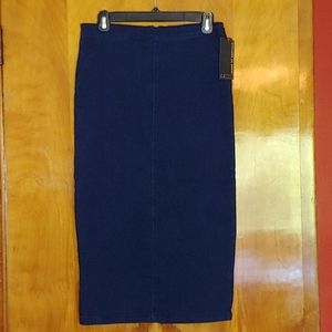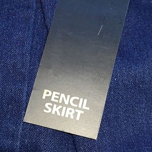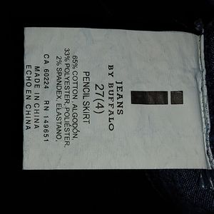 Slim fitting pencil skirt by Jeans by Buffalo. New with tags, zippered back, and slit in the back for easy movement. Dark wash and great for spring and a casual look. Brand new, never worn. Size 27 or 4.