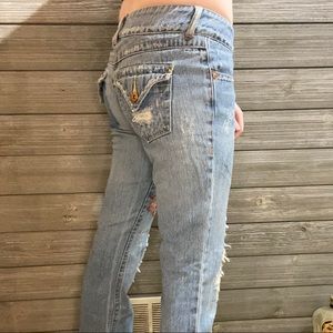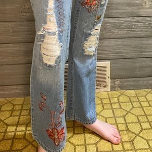 Squeeze Jeans | Flower embroidered | Flared | Rips