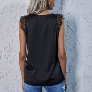 Boho Black Delicate Lace V neck Tank Satin Top