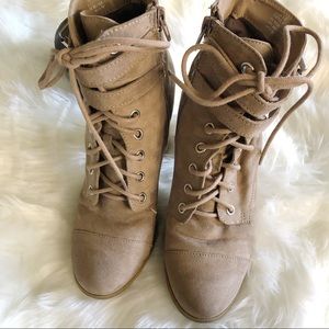 Super cute khaki/tan lace up combat boots, 6.5 by madden girl