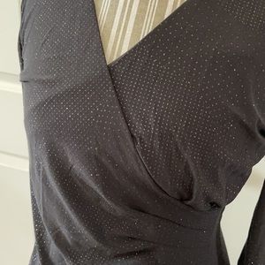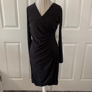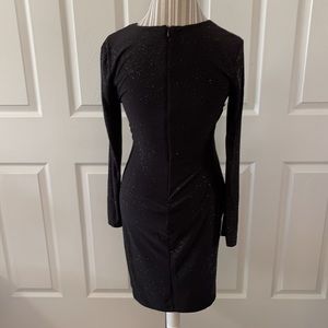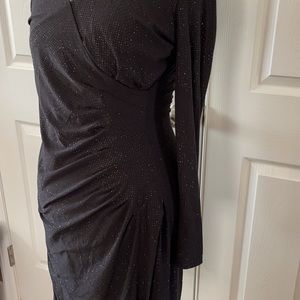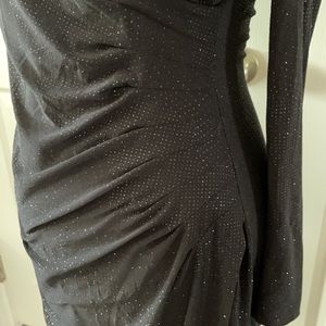 Beautiful black long sleeve dress. Shimmers in light. Excellent dress for New Year’s. Excellent used condition. No rips stains or tears. Zipper works perfectly dress hits at knees.