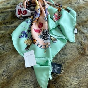 Gucci Silk Shawl/Scarf Aqua-Pink